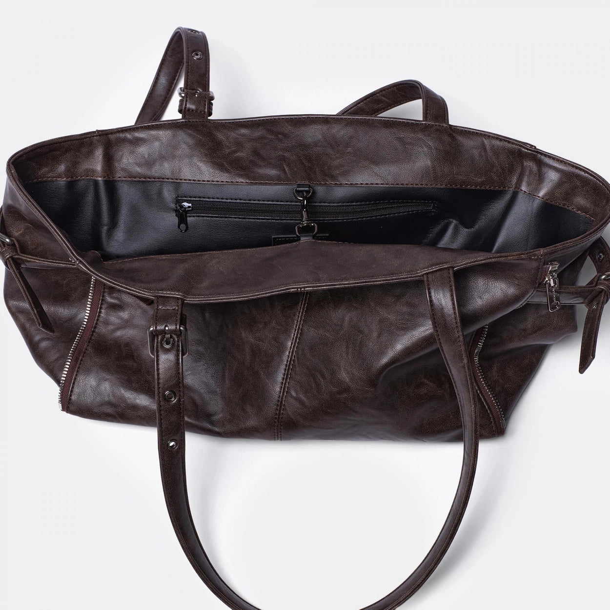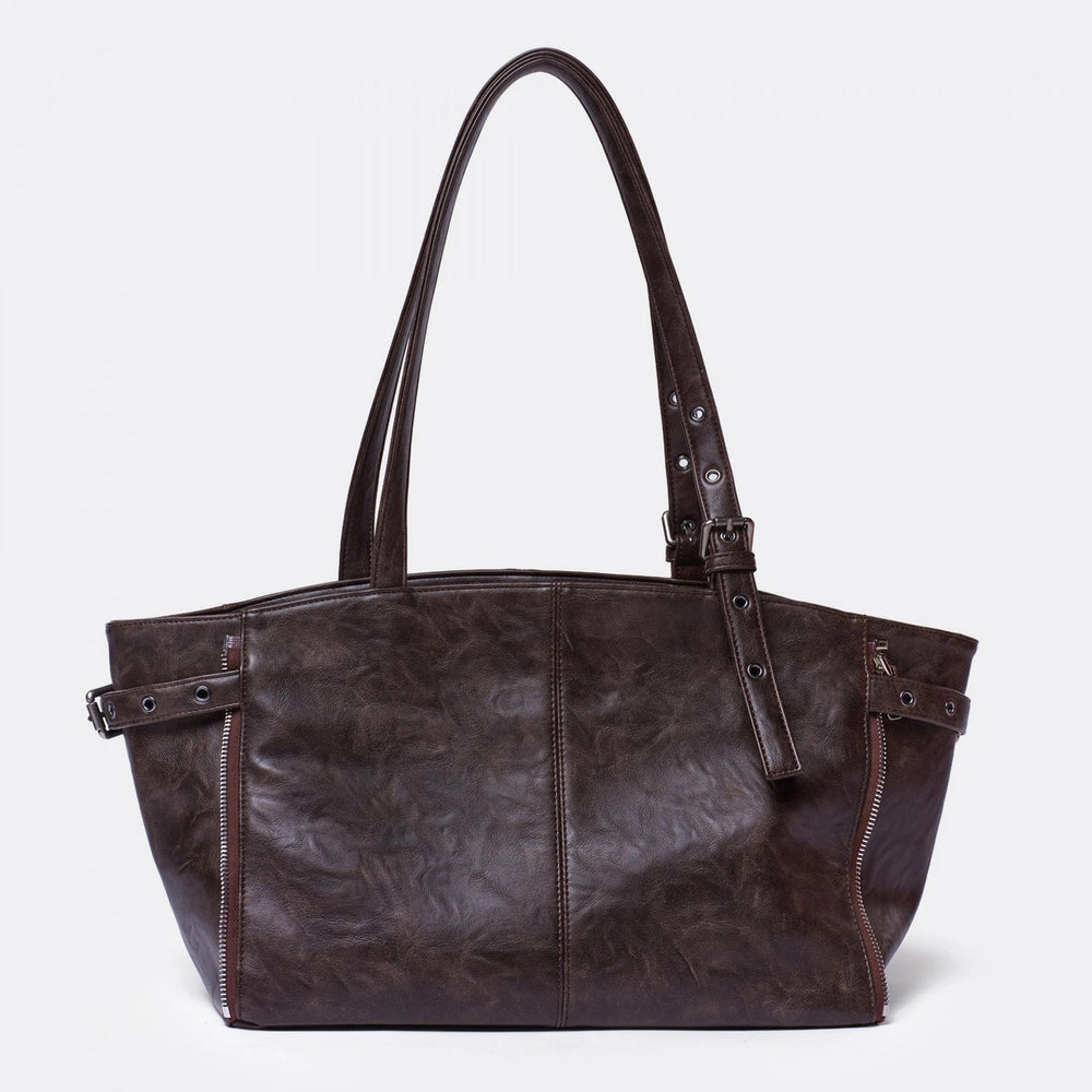 Two way shopper bag : side zip half close or open